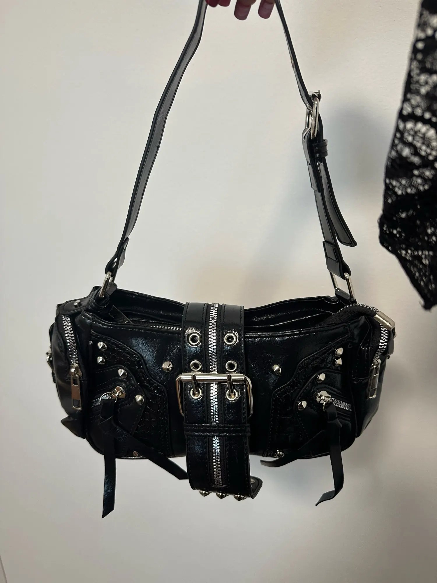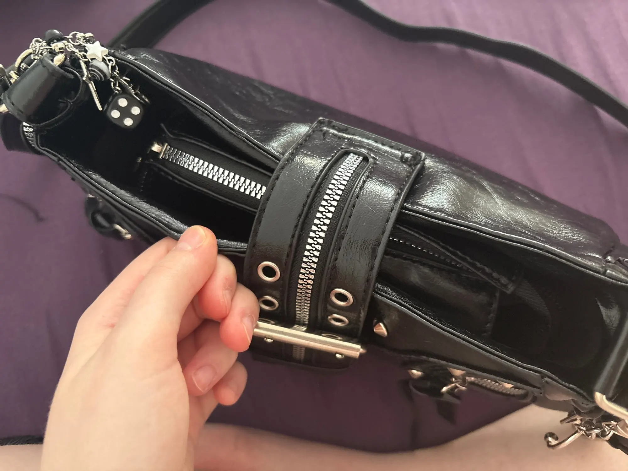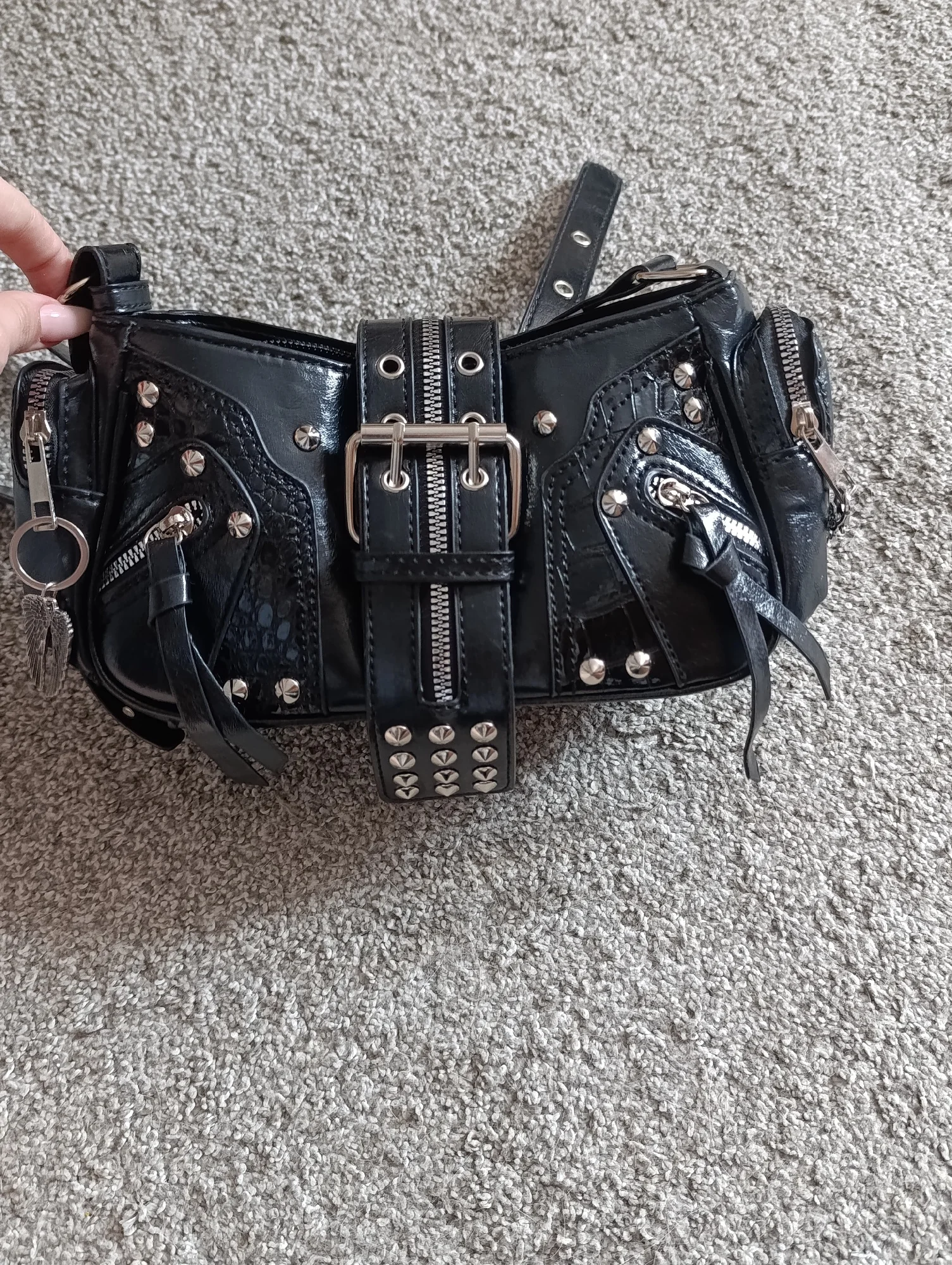 The handbag is very beautiful and cute!! I immediately figured out how to attach the long strap, and also, by the way, it's magnetic, so you don't have to unfasten the strap every time.