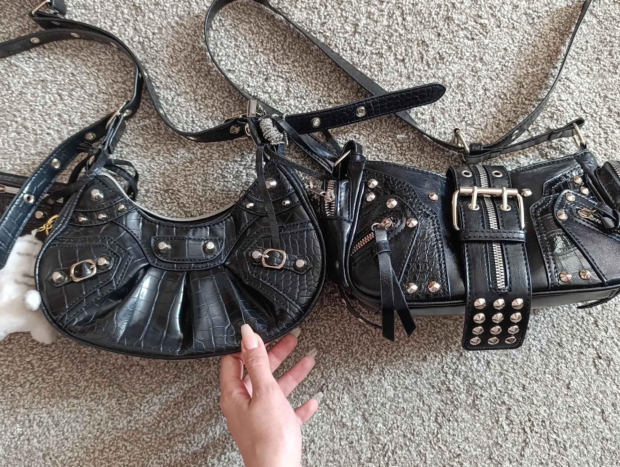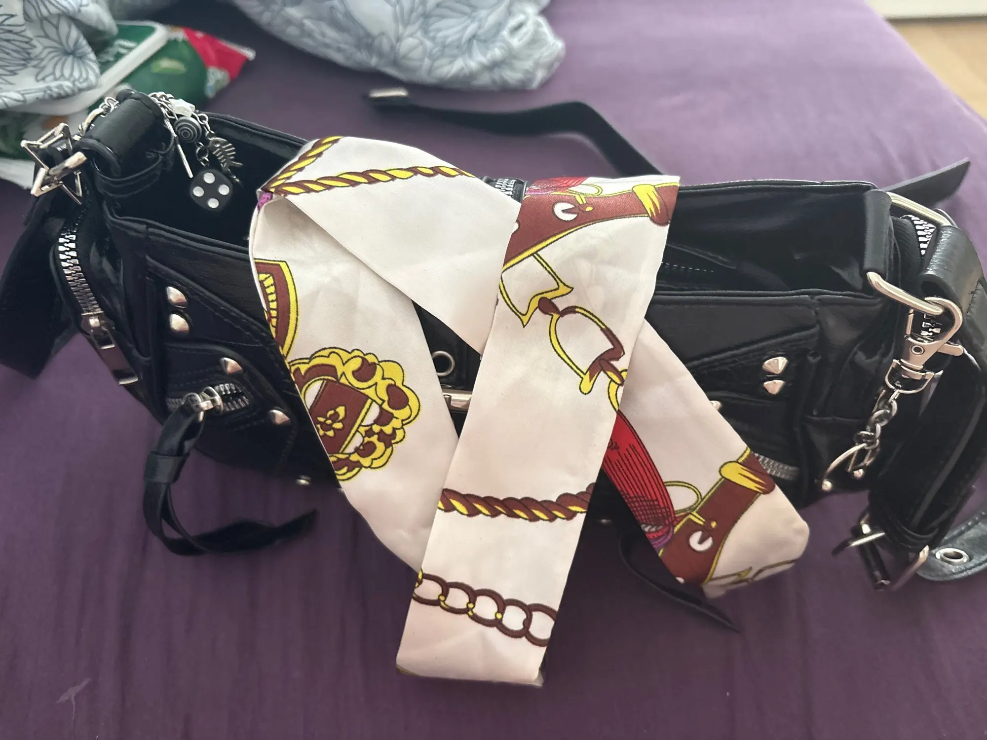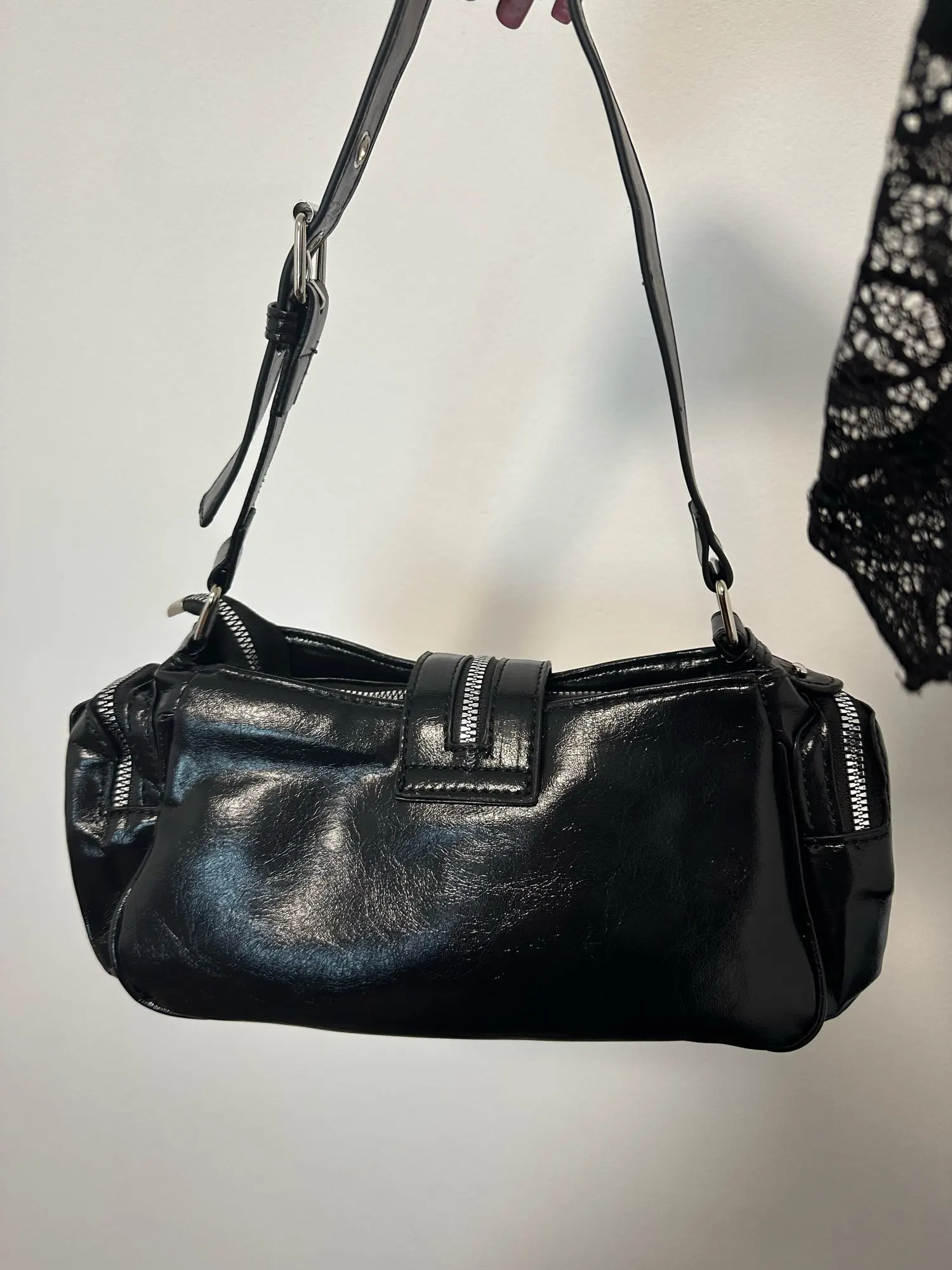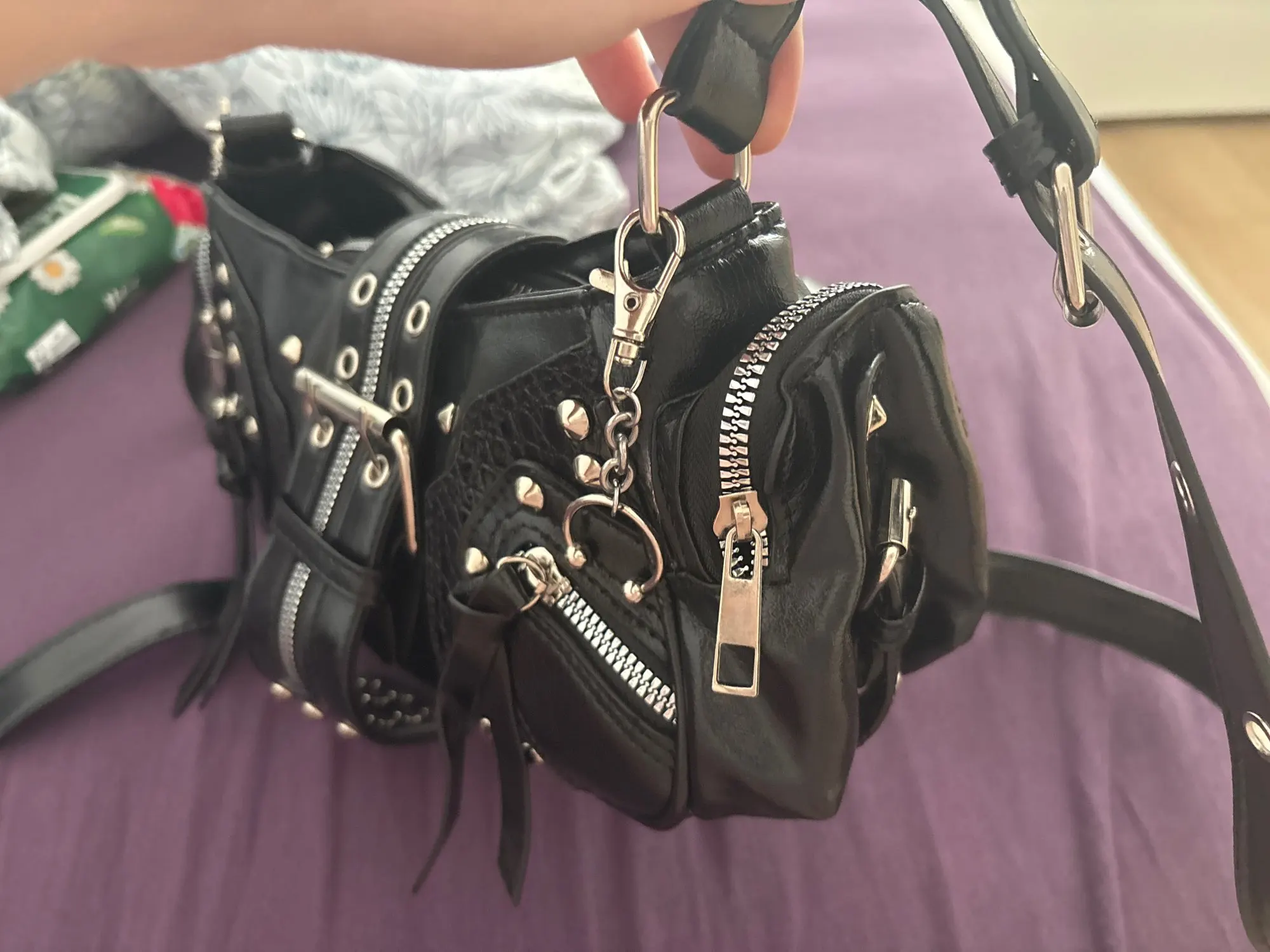 The handbag is very beautiful and cute!! I immediately figured out how to attach the long strap, and also, by the way, it's magnetic, so you don't have to unfasten the strap every time.