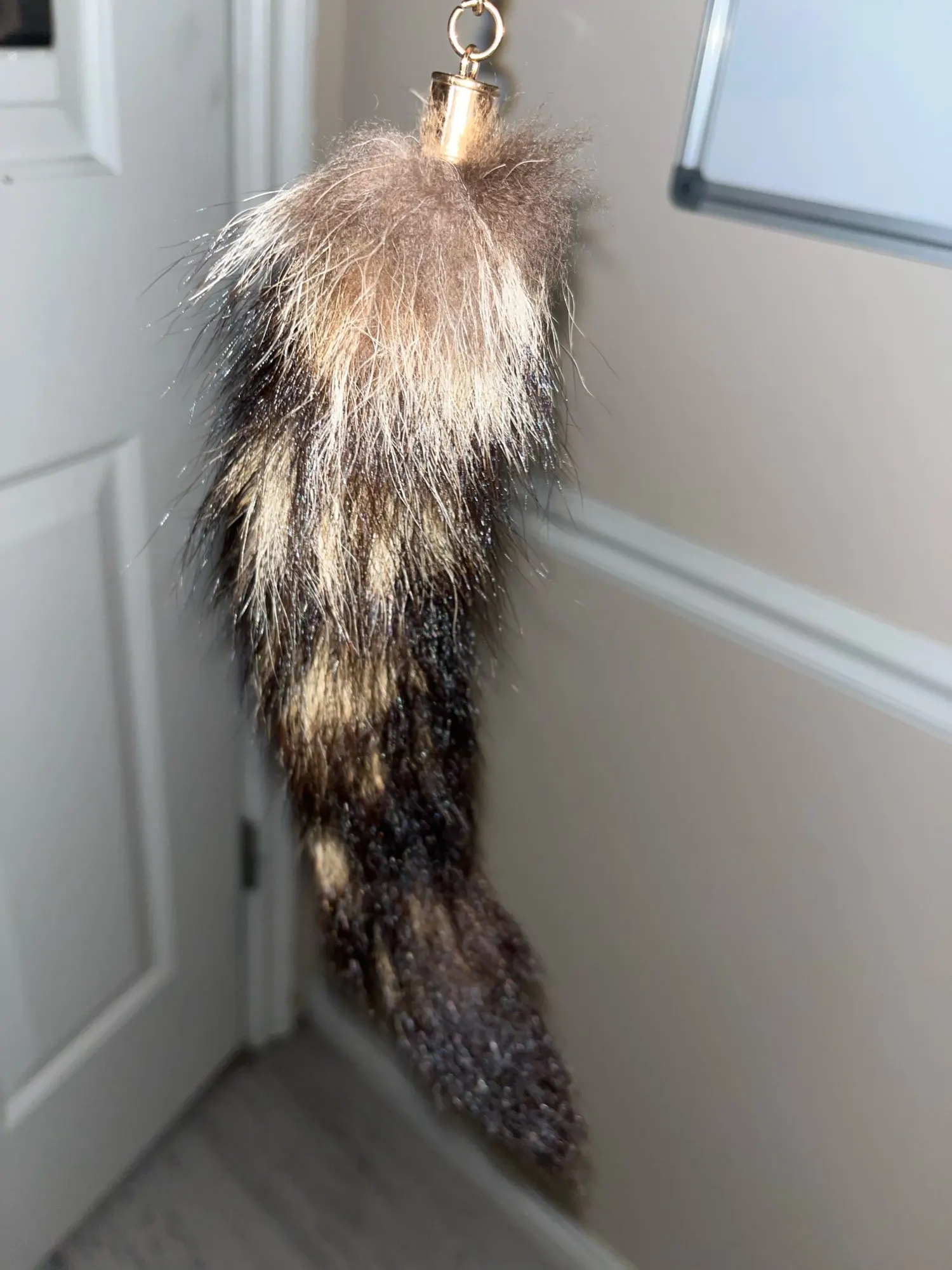 I’m kind of sad because this is a real raccoon tail and i would recommend buying though it’s for cheap price. My dad got me this and i love it.