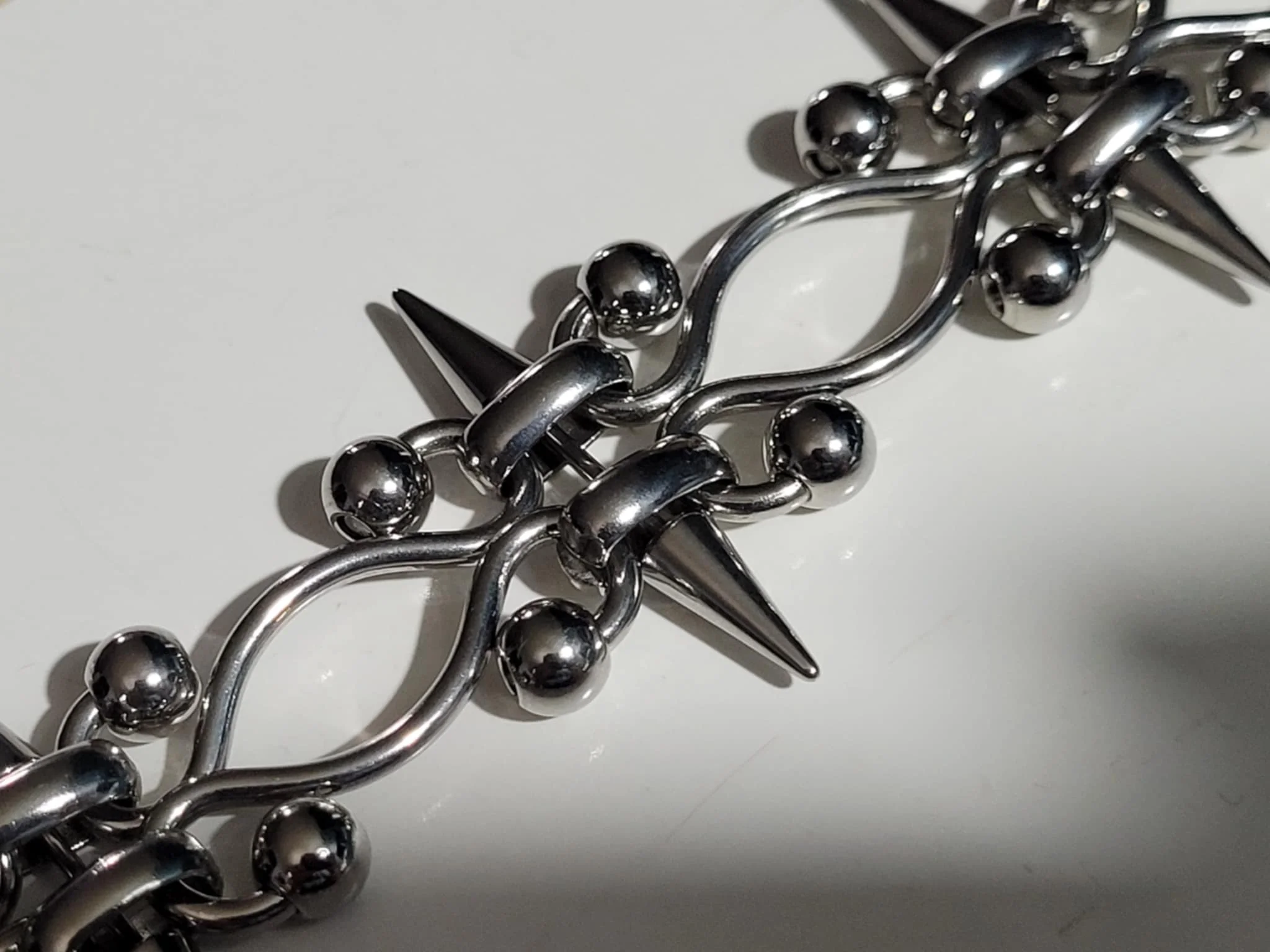 Winter Corkery Very nice piece. Definitely stainless steel. Be aware that the ends of the center pieces with the pointed ends are not secured and will need to be glued.