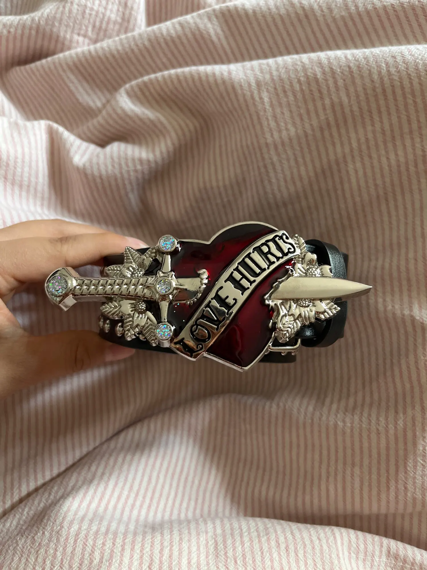 Lovely little belt!! Its made quite small, my waist is around 30-32 inches and i use maybe the 3rd or 4th hole in so beware if you have a wider waist size. Love wearing it for work!